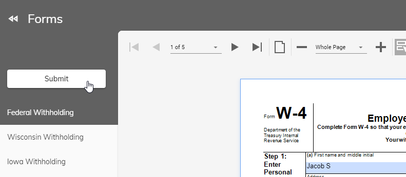 After you click on Forms, Federal Withholding and the pertinent State(s) Withholding will appear.