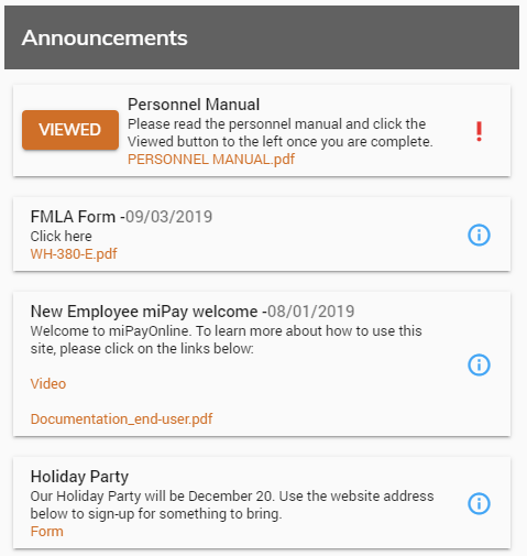 At times, the administrator of the site may ask for am acknowledgement that you Viewed the announcment or the attachment. To do so, simply click the Viewed button and then Yes to acknowledge the Announcement.