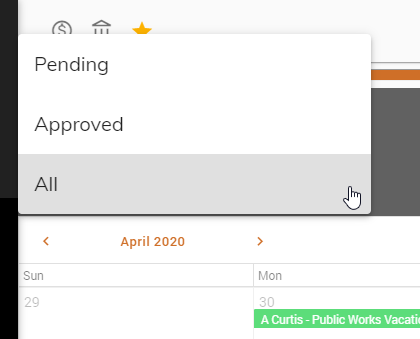 You will be able to see All time off requests. To only see Pending or Approved time off requests, change the option to the appropriate setting you desire.