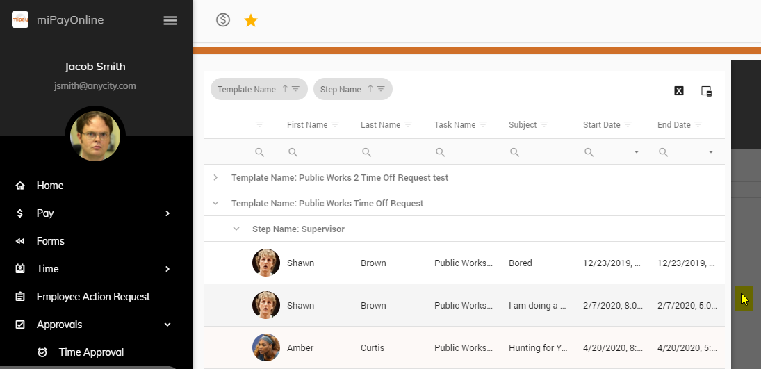 If your organization is utilizing the Time Off Request capabilities through this site, supervisors will have the ability to review these requests. When you first see the calendar, you are only seeing pending time off requests. You have the ability to view all time off request, whether pending or approved.